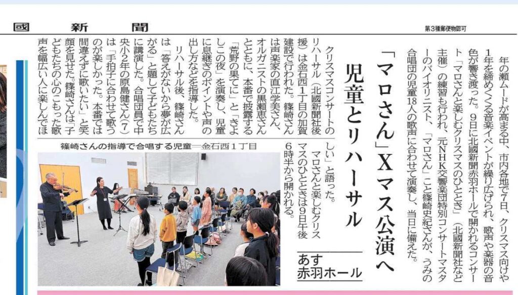 9日に行われるコンサートの前に「まろさん」こと篠崎史紀(しのざき ふみのり)氏がうみの合唱団に指導指導して頂きました。